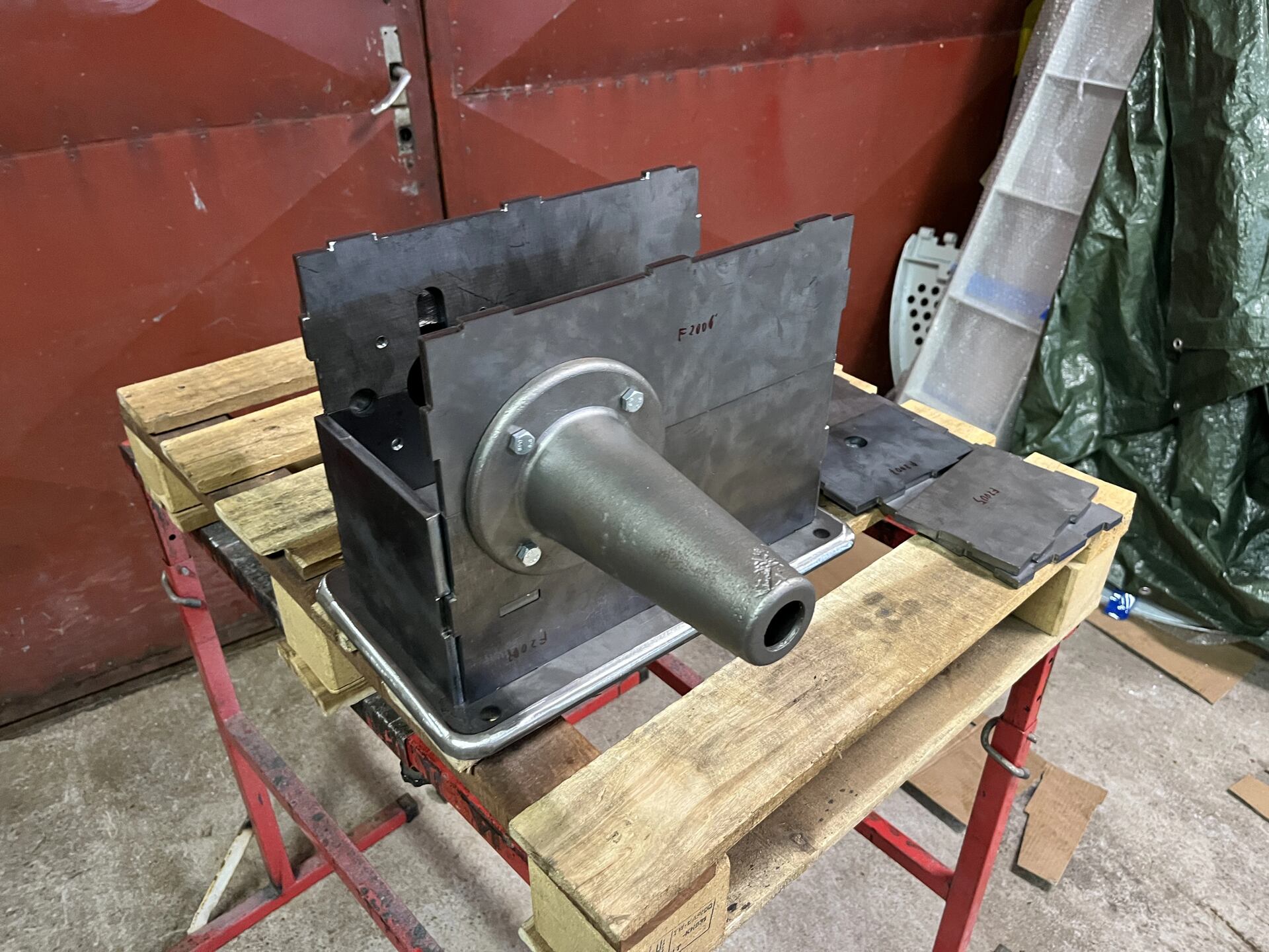 Vše jsme si nakreslili, přičemž jsme se drželi rozměrů ze skici od Janky, zároveň to ale přizpůsobili našemu elektromotoru a převodovce a co nejvíce se přiblížili provedení dobovému ventilátoru z jediné známé fotografie. Jednotlivé díly jsme pak nechali vypálit na laseru, nebo nařezali z ocelových profilů. Jednu dvojici dílů jsme dokonce nechali odlít. S výrobou nám také pomohli naši kamarádi z pěchotního srubu R-S 72. Dodali nám pečlivě vyrobené repliky pérových tlumičů, na kterých je soustrojí uložené, a zároveň i originální cedulku s logem firmy Janka. Za tuto pomoc jim patří velké díky.